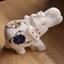 Dekorativ elefantstaty med detaljerade mönster. Perfekt som prydnad i hemmet. Är inte gjort av plast men vet ej vad materialet är.
