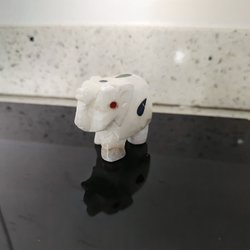En söt elefantfigur tillverkad i sten. Den väger 161 gram och är cirka 8 cm lång.