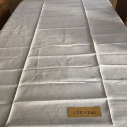Linneduk med dekorativt mönster. Den har initialer broderade på sig.