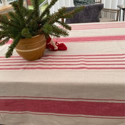En bordsduk med ränder.