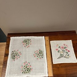 Två broderade dukar