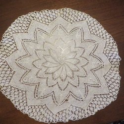En vit duk med ett vackert mönster. Perfekt för att duka fint till middagen eller festen. Diskret monogramsignerad i ena hörnet. Osäker på material.