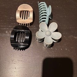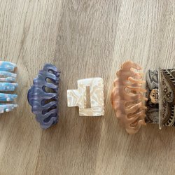 Ett set med olika hårklämmor i varierande stilar och färger. Perfekt för att skapa olika frisyrer och hålla håret på plats. Se bilder för detaljer om storlek och design.