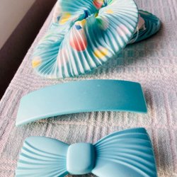 Hårspännen i olika utföranden. Här finns hårspännen med fluffiga bollar i blått, rosa och beige. Det finns även hårspännen med strass-stenar i form av snöflingor, samt hårspännen med små bollar i svart och rosa. Släta hårspännen i lila, blått, rosa och ett med ett motiv.