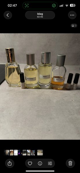 Jag säljer ett parfympaket med både stora flaskor och småprover.