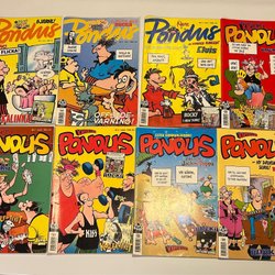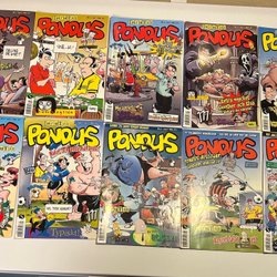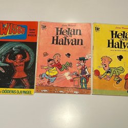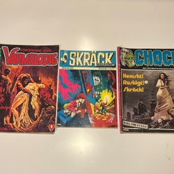 Samling av fem nummer av Serie-Nytt från 1959-1960, äventyr och action . Från 1959 nr 51. Från 1960 nr 6,7,16,41. Korsorden lösta ( se foto) och bokstäver ( troligen signaturer) skrivna på några av tidningarna som är lite slitna men fullt läsbara