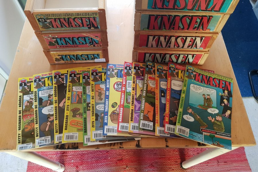 69 lådor 21hel år,schassen knasen 8 hel år över 600 tidningar i mycket fint skick +extra t.idningar,går att packa om så man slipper lådorna finns i luleå.