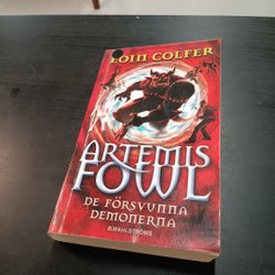 Av Eoin Colfer på svenska. Siffror skrivet med blyerts på försättsbladet.