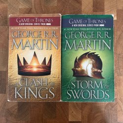Två böcker i serien A Song of Ice and Fire av George R.R. Martin. Innehåller 'A Game of Thrones' och 'A Clash of Kings'. ISBN för 'A Game of Thrones': 9780006479888, ISBN för 'A Clash of Kings': 9780006479895.