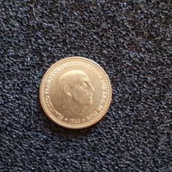 Detta samlarobjekt är från Spanien och är präglat år 1975. Värdet är 5 pesetas.