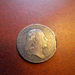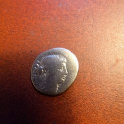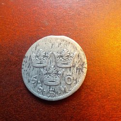 Detta är ett danskt mynt från 1927 med ett värde av 5 öre. Myntet har ett hål i mitten.