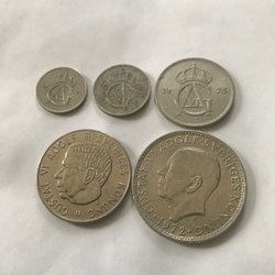 Samling av danska öre mynt, 8 st Inkluderar 1, 2, 5, 10, 25 och 50 öre.