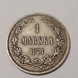 2 markka mynt från 1874 Silver- Ag . Alexander II. Bra condition.Se bilder.