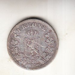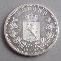 Oskar II. Norge. 1 Krone 1877. Silvermynt. Ut 1:-