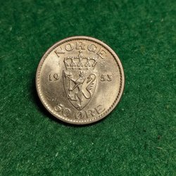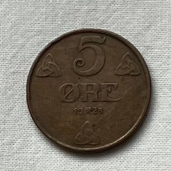 Järnmynt Norge 5 öre från 1944, o cirkulerad exemplar, kvalitet 10, ej rengjord