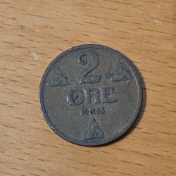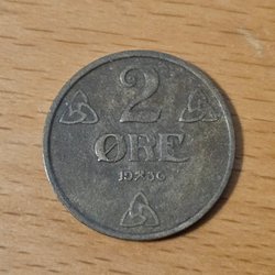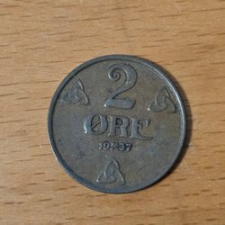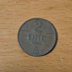 Ett 2 Öre mynt från Norge. Årtalet är 1919.