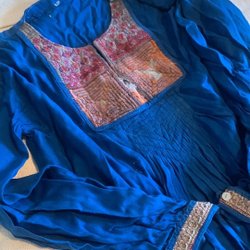 Sjal/Sari med ett vackert mönster i blått och vitt. Sjalen har ett zickzack mönster på ena sidan och ett blommönster på den andra. Från Indien. Helt ny!