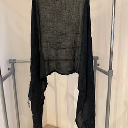 Elegant svart sjal med fransar. Perfekt för att komplettera din outfit för speciella tillfällen eller för att lägga till en touch av stil till din vardagslook.