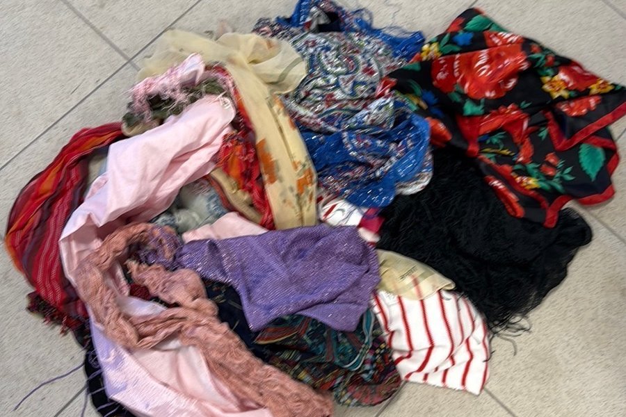 Ett varierat urval av sjalar i olika färger och mönster. Här finns allt från blommiga tryck till mer abstrakta designer, perfekta för att piffa upp vilken outfit som helst.