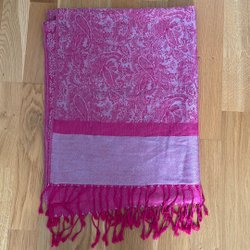 Rosa pashmina sjal med fransar. Fantastiskt mjuk och skön. Använd men i fint skick.
