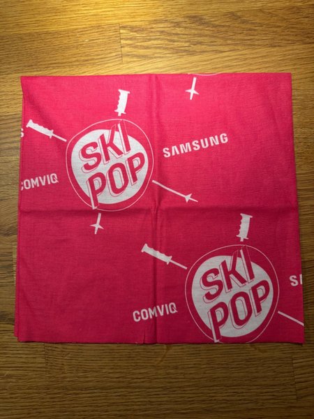 Oanvänd Rosa buff/halsvärmare med ”Ski Pop” tryck. Unisex! Går att använda på flertalet olika sätt.