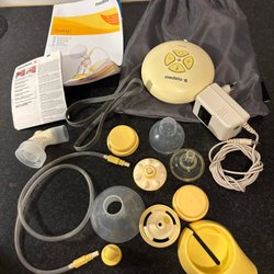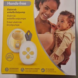 Elektrisk bröstpump för enkel användning. Den levereras med alla tillbehör som visas på bilden.