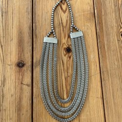 Två tunga kedjor i gulmetall. Kan bäras var för sig eller tillsammans. Tillsammas funkar de som skärp på mig.