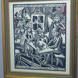 Ej examinerad ur ram - gäller inglasade verk. Ramslitage kan förekomma i varierande grad. Gäller ej akryl målningar på duk/canvas.