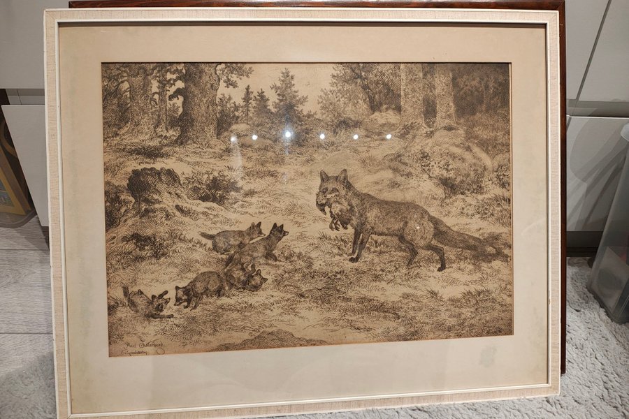 En originaletsning av den svenske konstnären Axel Österberg (1866–1952). Motivet kallas ofta för "Rävarna". 60x47cm med ram.