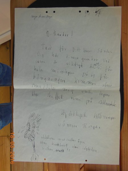 Handskrivet brev till Lorensbergs Konstsalong