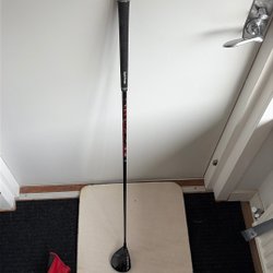 Ping G30 5 fw med ett ping original skaft i Stiff och ett svart/rött Golf Pride Midsize grepp. Klubban kommer med ett Ping G30 headcover.