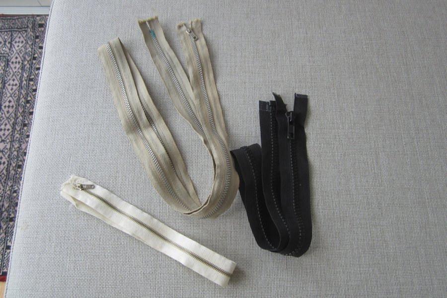 3 st dragkedjor, 1 st svart 60 cm delbar, 1 st vit 37 cm och 1 st beige 100 cm, hela och rena. All info finns i Traderas vinnarmail.
