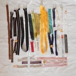 Femton blixtlås i flera färger och olika längder. Både oanvända och begagnade.
