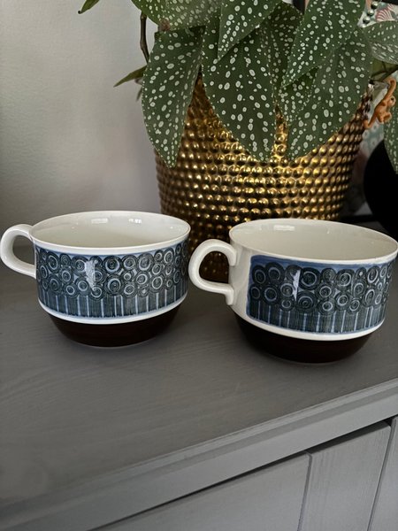Amanda - två fina koppar från Rörstrand. Tillverkades 1968-1977 och är designade av Christina Campbell.