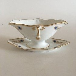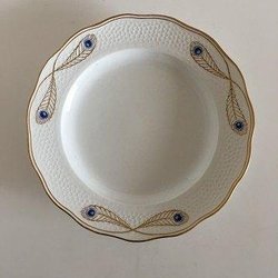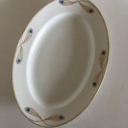 Royal Copenhagen Stel No 118 Rundt Serveringsfad Påfugl med Guldkant