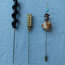 Fina hattnålar med kulor av glas från 50-talet. Fint skick, ca 7 cm höga