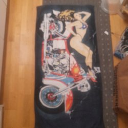 Badlakan med motiv. Se bilder. Mått: C.a: 74 x 137. Helt nytt, men plasten är öppnad för att kunna ta bilder. Katt finns i hemmet.