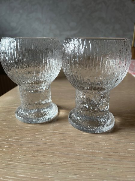 Dessa glasbägare har en texturerad yta och en stabil bas. De är lämpliga för olika drycker.