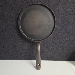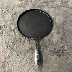 Stekpanna med mässingshandtag. Diameter ca 20 cm. Stekpannan är inte lämplig för induktionshällar.