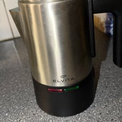 Perkolatorbryggare gissningsvis från 1940-60 talet tyvärr finns en bula på sidan, kan gå att trycka tillbaka. Är inte funktionstestad. Bör nog ses som en prydnads sak. Men kanske fungerar den ??