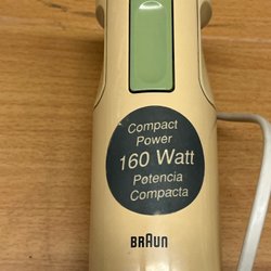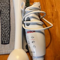 En stavmixer med en hastighet. Enkel att använda. 220-240 V/150 W. Märke: Clas Ohlson. Modell: WB972A00.