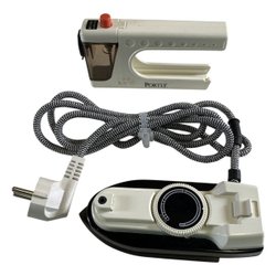 Det har en omkopplare för 100/110V och 220/240V, vilket gör det anpassningsbart för olika elnät. Strykjärnet har en temperaturreglering med inställningar.