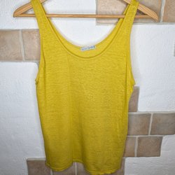 Topp med tunna axelband och draperad rygg. Toppen har en lös passform och en glansig yta.