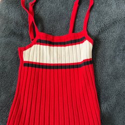 Svart topp i storlek 38 med dragkedja i ryggen och snörning framtill.