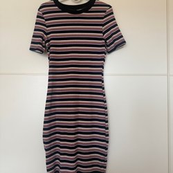 Snygg och festlig klänning med leopardmönster i svart och guld. Klänningen har en v-ringad rygg och långa ärmar. Perfekt för festliga tillfällen! Storlek 38