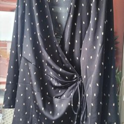 Vit klänning med omlottdesign, v-ringning och puffärmar. Klänningen har en volangkjol och knyts i midjan.