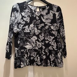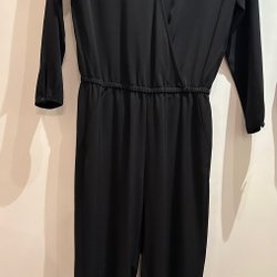 Snygg svart klänning med liten krage, dragkedja. Kort modell