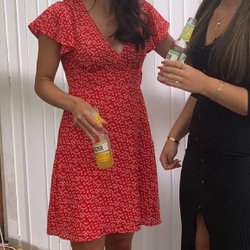 Klänning med omlottdesign och volangdetaljer. Klänningen har korta ärmar och ett prickigt mönster från Veromoda