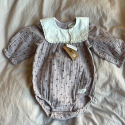 Blårandig omlottbody med långa ärmar som man kan vika över händerna på.