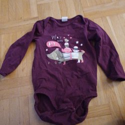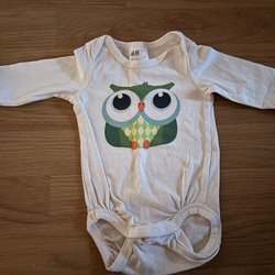 Långärmad, rosa H&M Adorables body med omlottknäppning och två storlekar i grenen.
